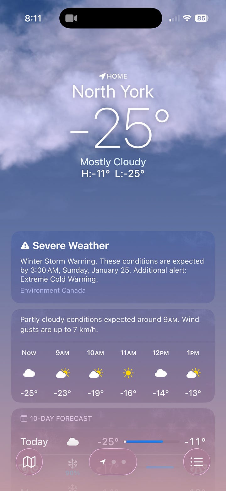這週真的很冷,暴雪之後又不斷地有天氣警報