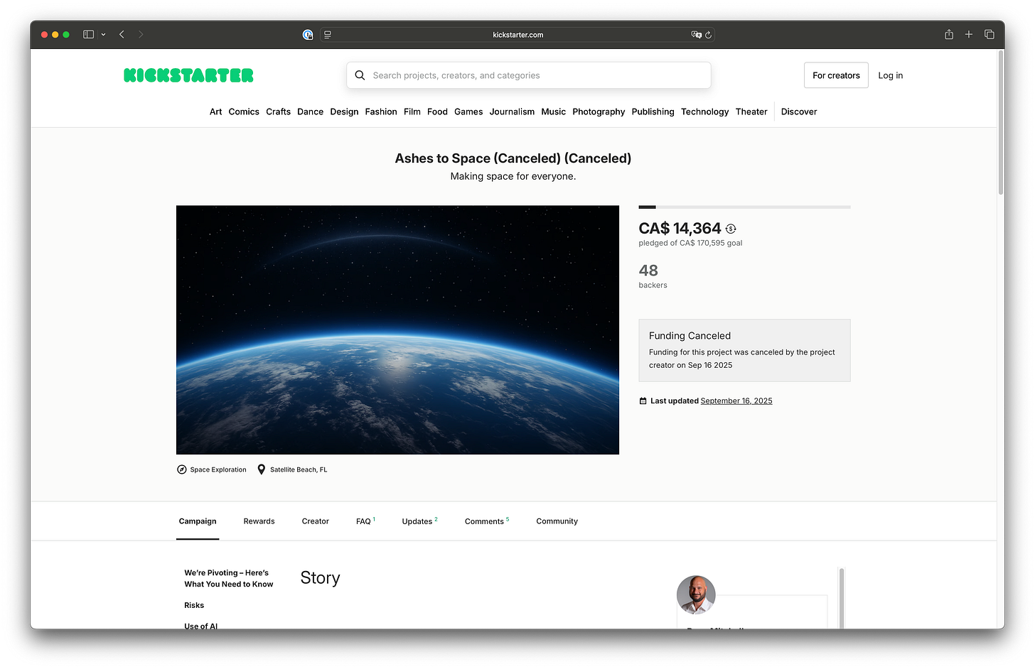 附上 kickstarter 募資失敗的計畫