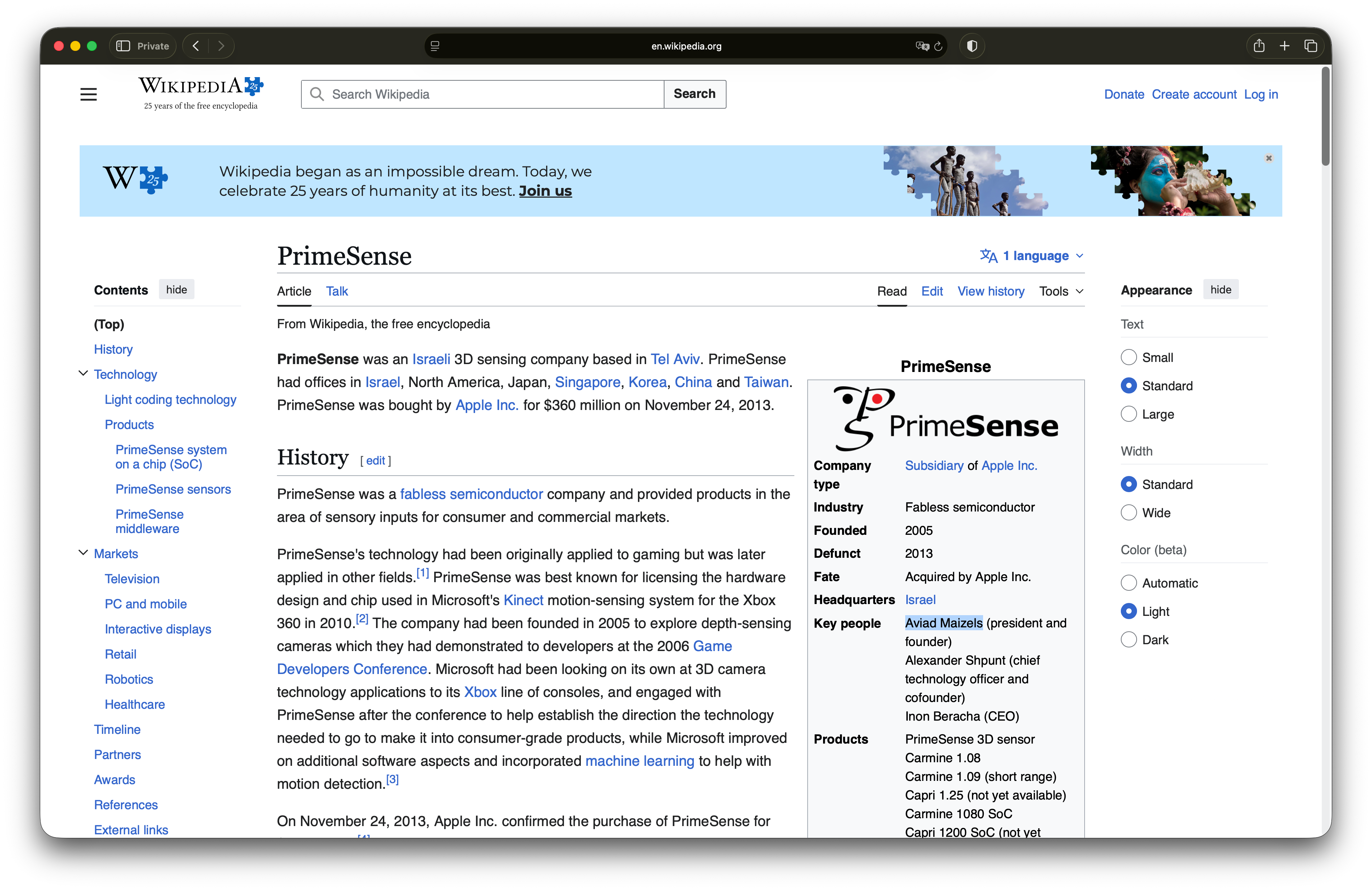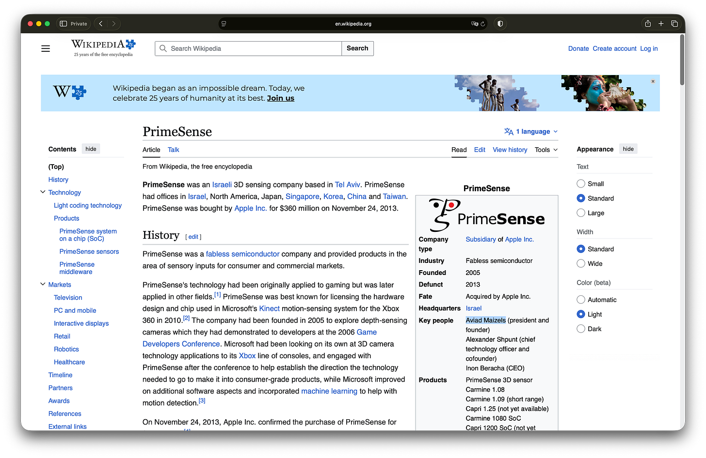 Aviad Maizels 過去創立過的 PrimeSense 也被蘋果收購(2013)